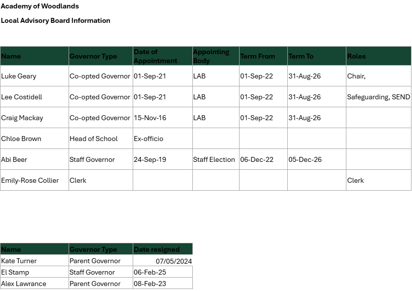 Please click below for details on the Academy of Woodlands Governors: